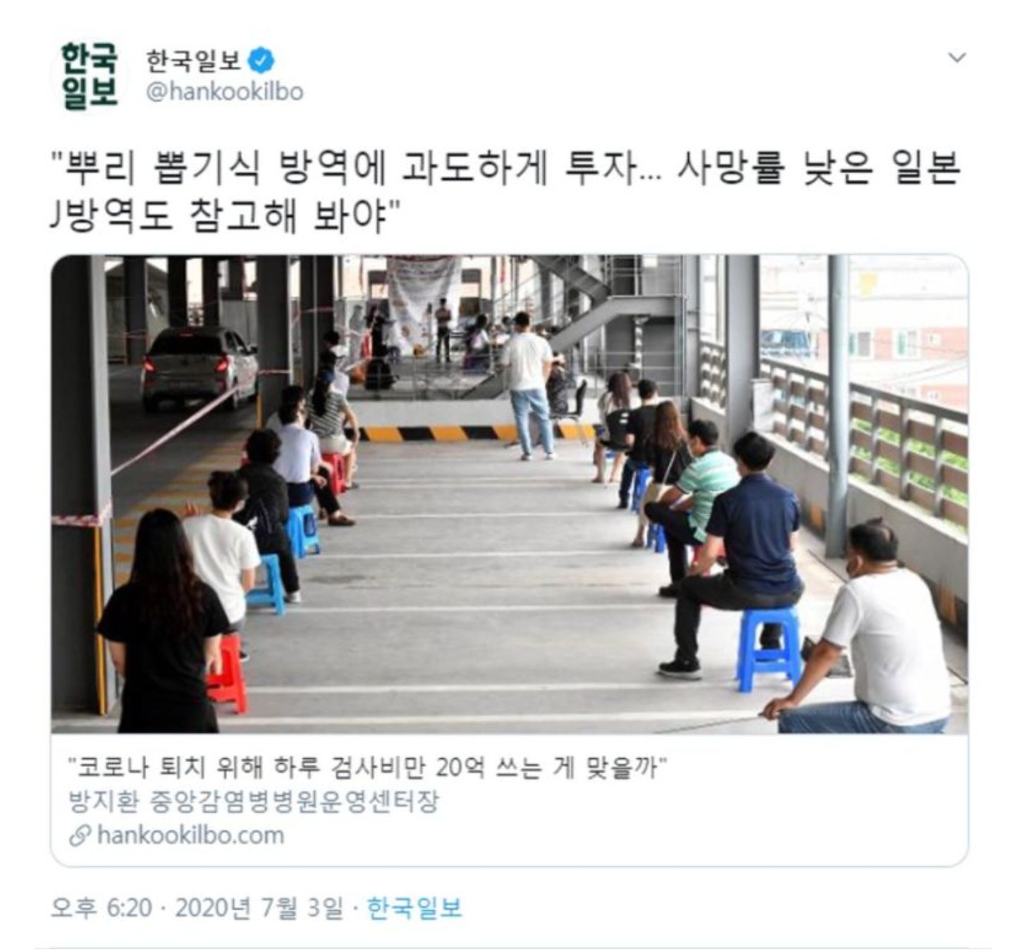 한국일보는 7월 3일자 라이브 이슈 기사에서 "코로나 퇴치가 불가능한데,