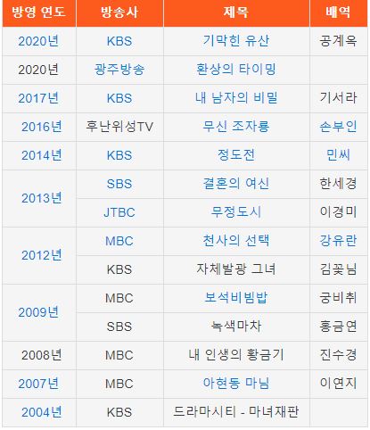 강세정씨는 위와 같이 다양한 작품에 출연하며 연기 생활을 해 오셨습니다. 정도전은 정말 재미있게 본 사극인데 정도전에 나오신지는 몰랐습니다. ㅎㅎ 이 밖에도 해피두게터, 라디오스타, 미스터리 음악쇼 복명가왕 등 예능에도 활발하게 출연하였습니다.