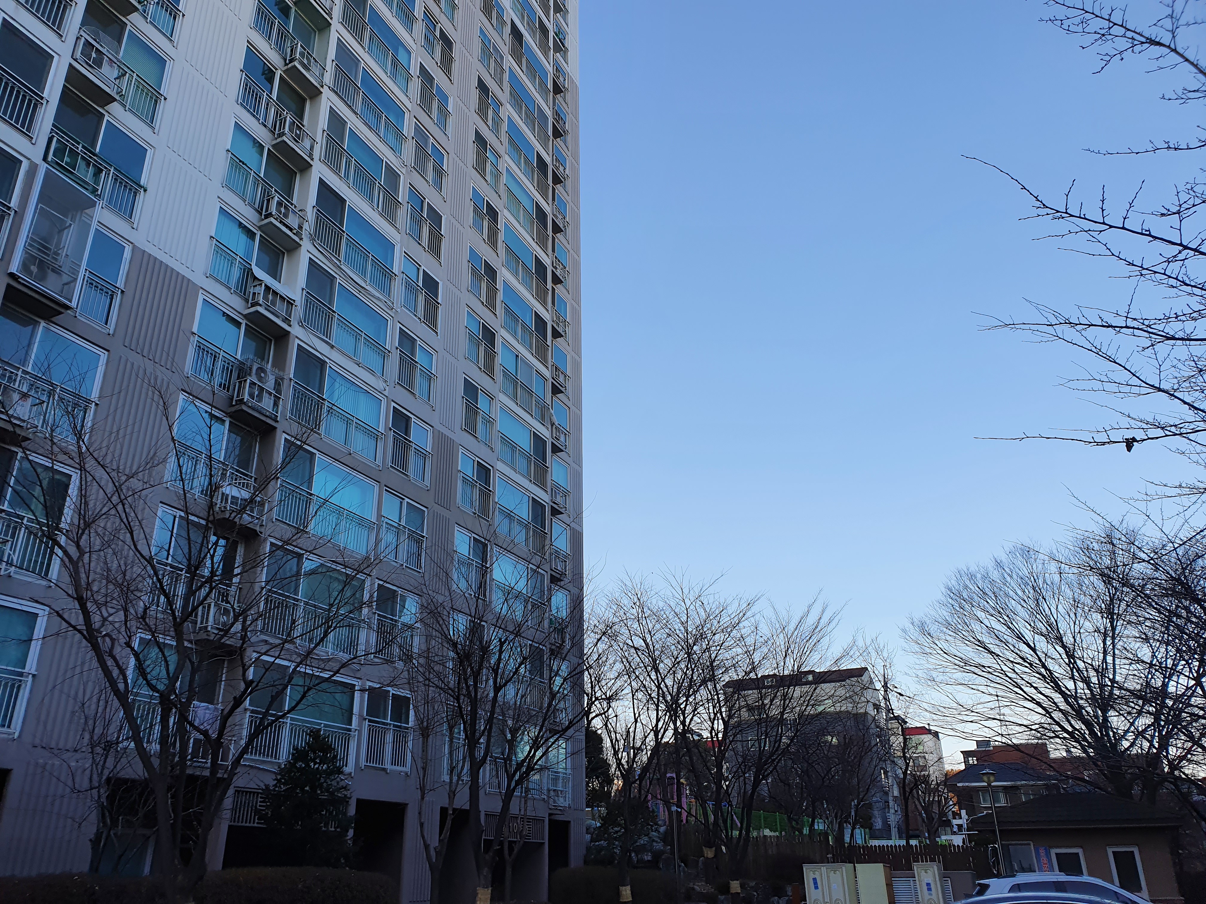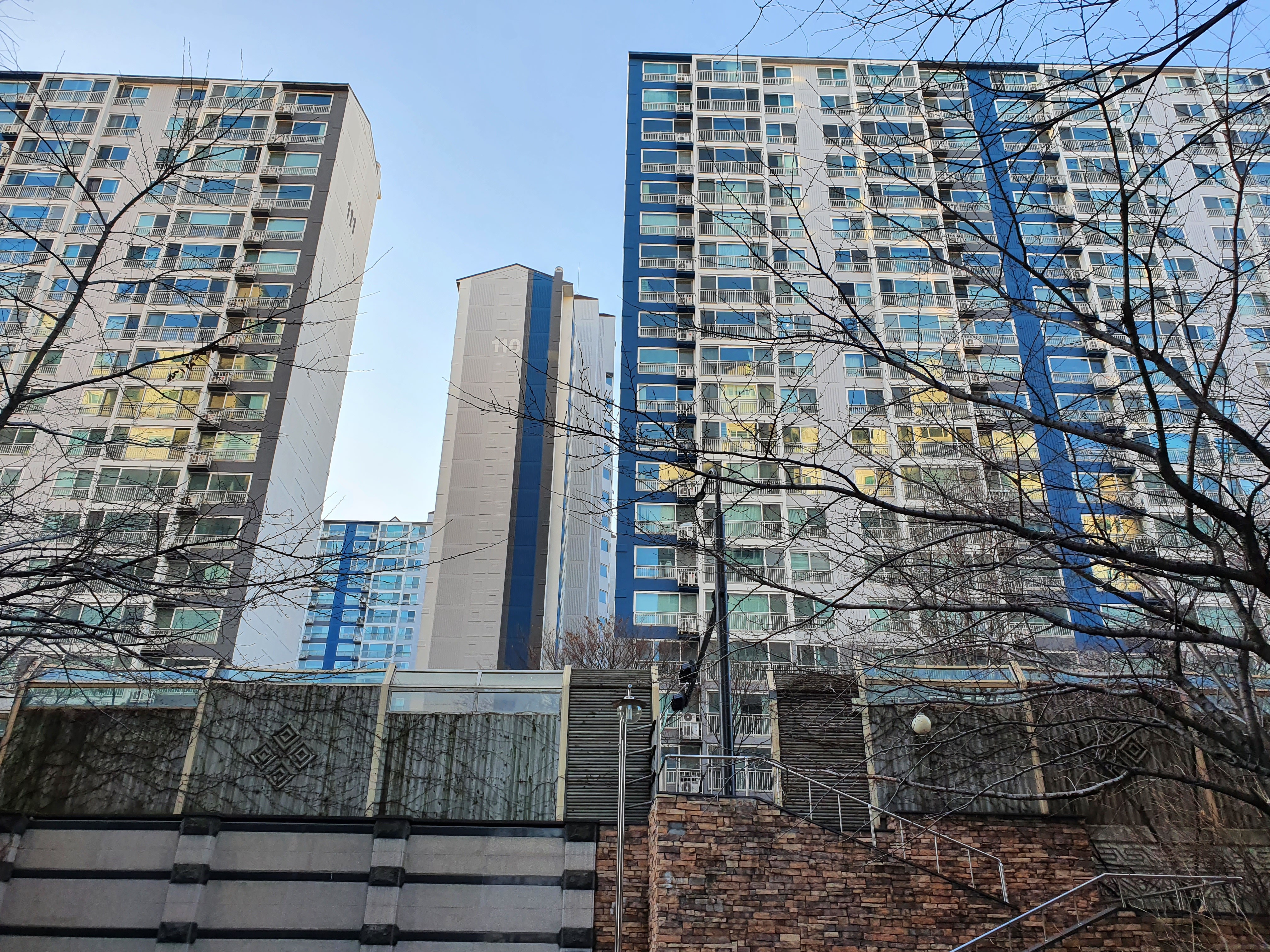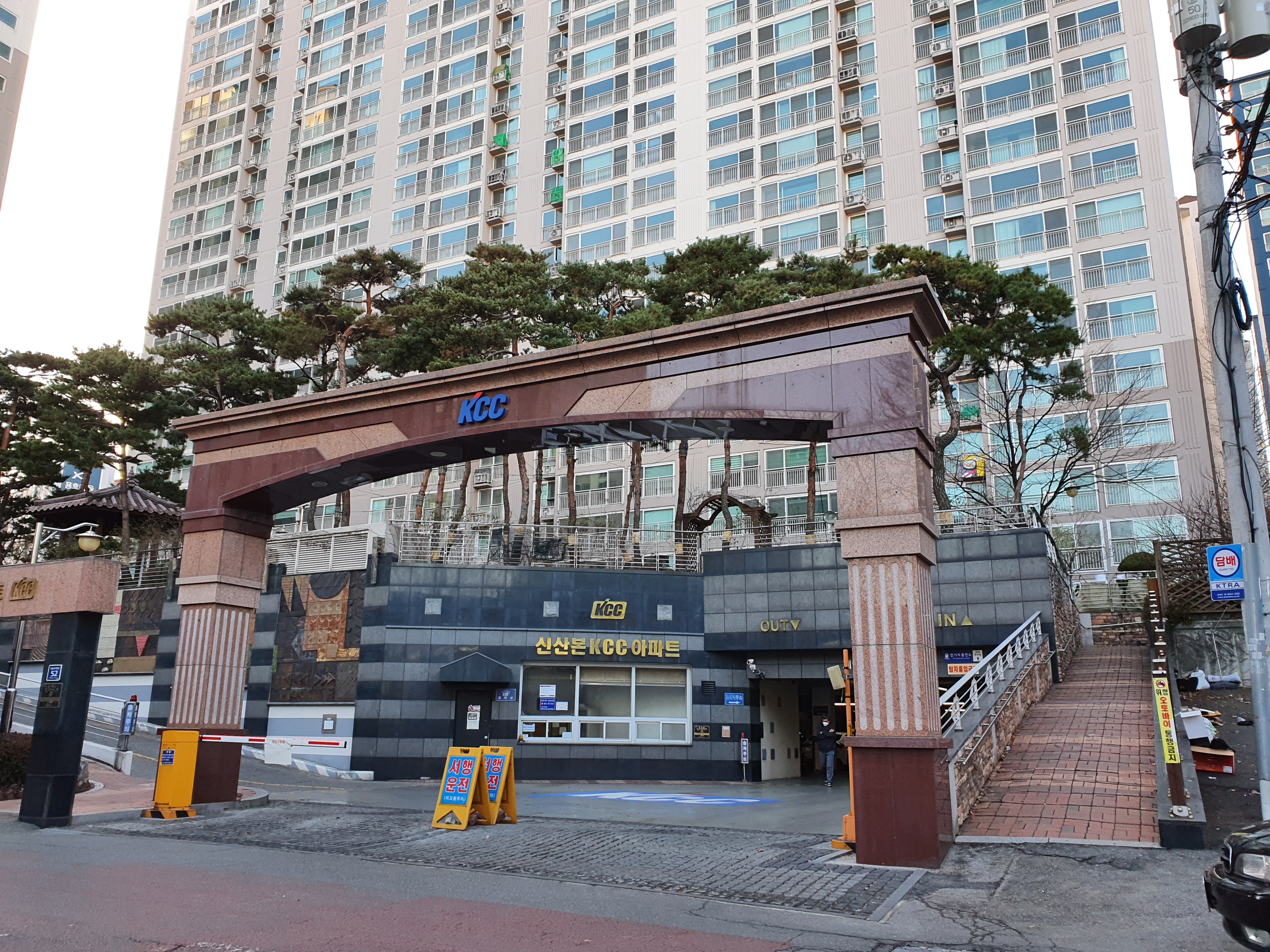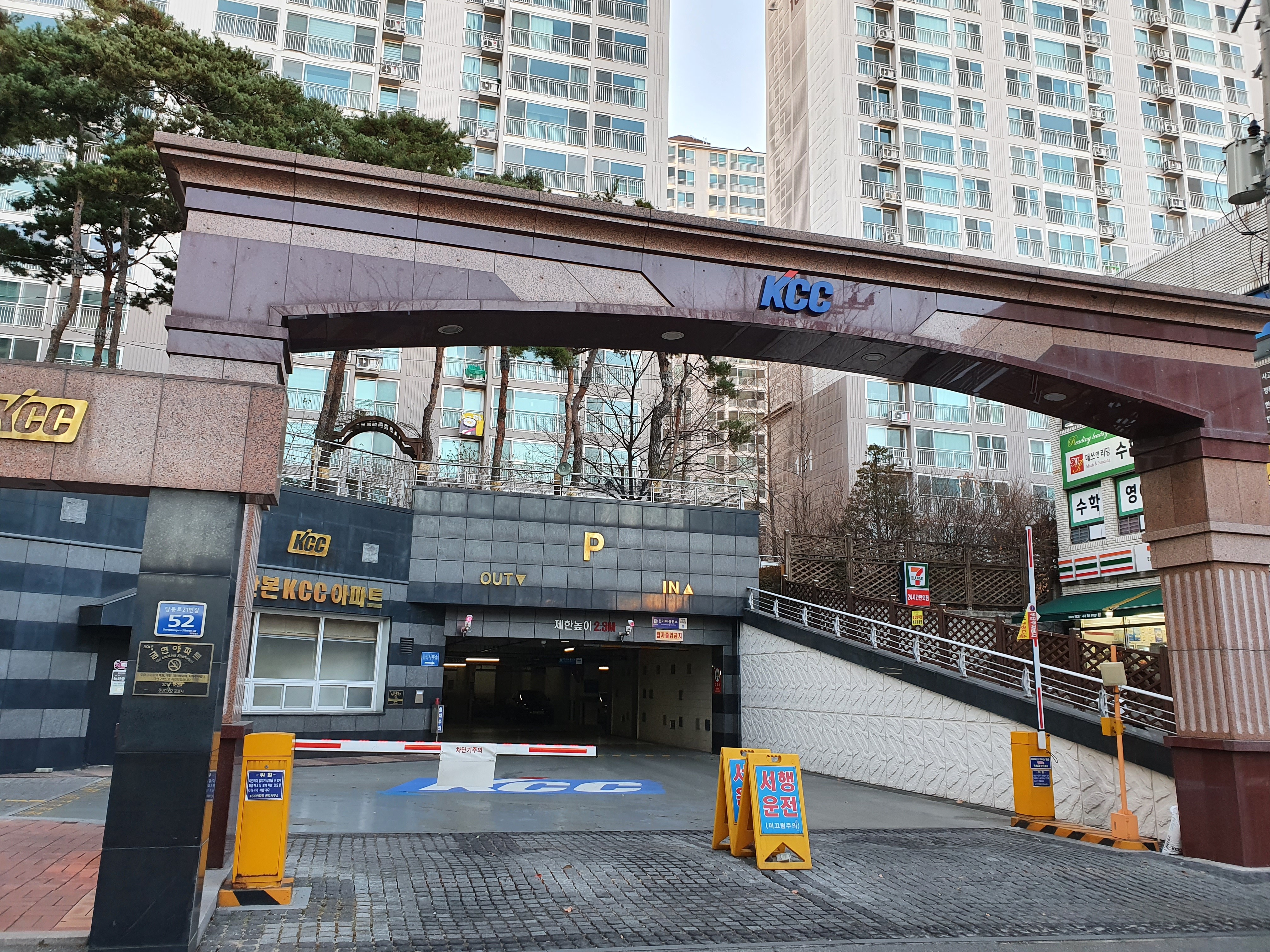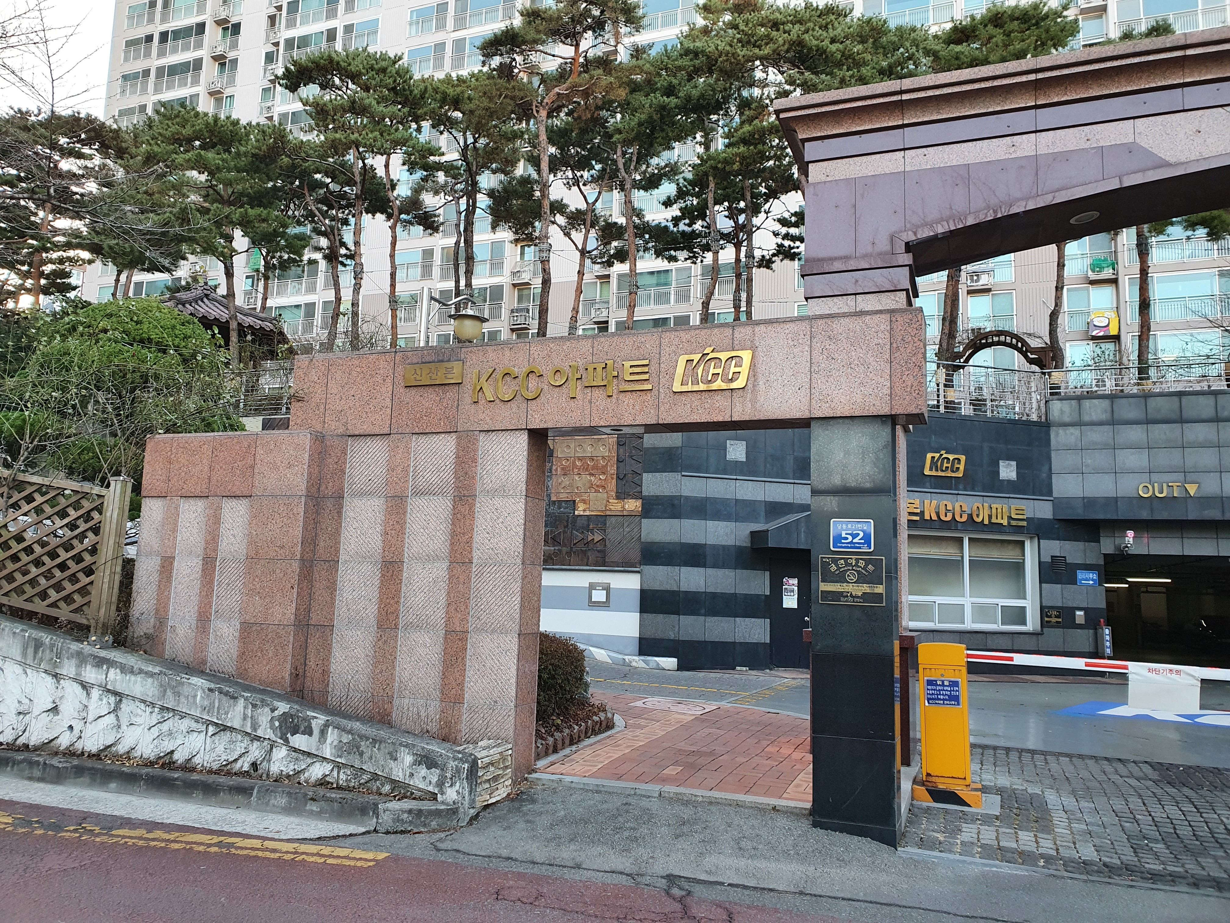 위치가 비교적 언덕배기에 있어서 아파트가 계단형식으로 위치해 있는데요. KCC아파트도 경사가 있는 곳에 짓다보니 이렇게 높이 지었나 봅니다.