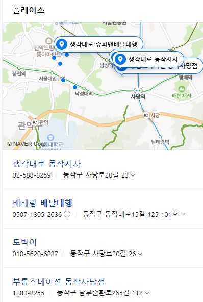 그러면 이 사진처럼 수많은 배달대행 업체가 뜹니다. 저는 사당동 배달대행이라는 키워드로 검색을 해 보았습니다.