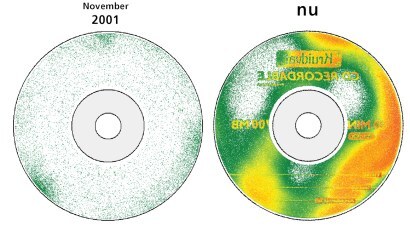 아래 공개된 이미지는 2001년 테스트가 시행될때 레코딩 된 직후의 사진과 현재 2003년 읽기 테스트한 사진의 모습으로 백색, 초록색, 노락색, 붉은 색이 에러의 심각도를 나타낸다고 하며 붉은 색 영역은 완전히 읽을 수 없는 영역이라고 한다.