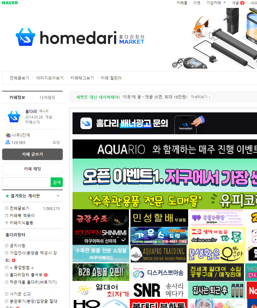 거래도 활발히 되는데 해수어나 담수어 열대어 구피 분양부터 어항 축양장 거래글도 많이 올라온다.