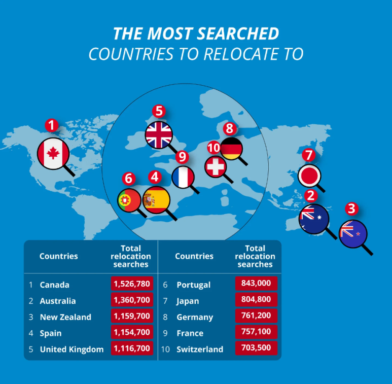 2023년 이민 많이오는 나라 순위는 한국이 2~3위