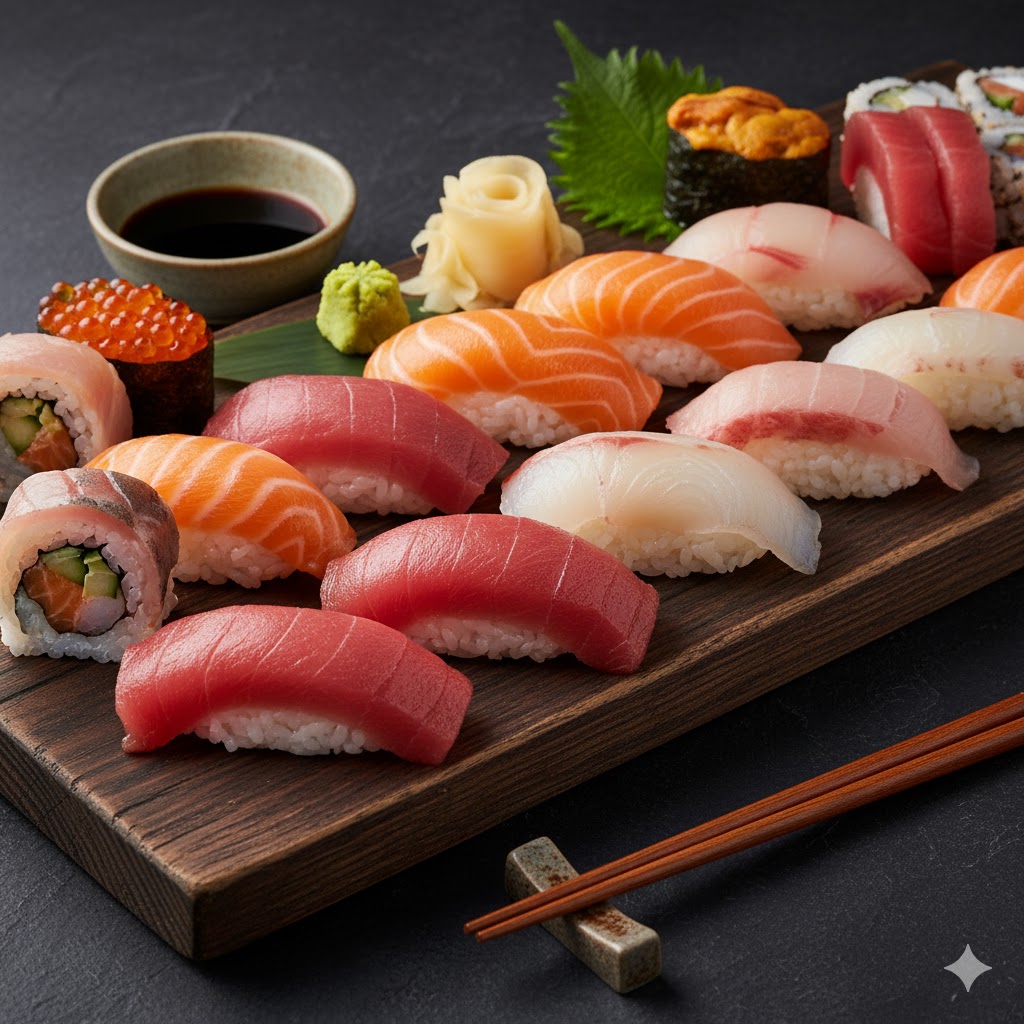 가격은 1,500엔 정도로 가성비가 훌륭하며, 특히 아부리(겉만 살짝 구운) 참치와 달콤한 새우 스시는 꼭 맛보길 추천한다.